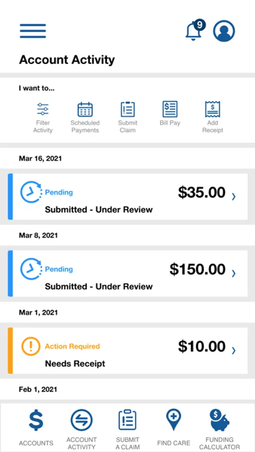 • Upload Claims and Submit Receipts