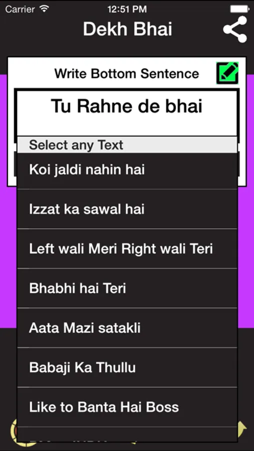 Generate your own Dekh Bhai Meme. It gives you the ability to add your own Title, and Text, Change the Icon to the one that matches your text.