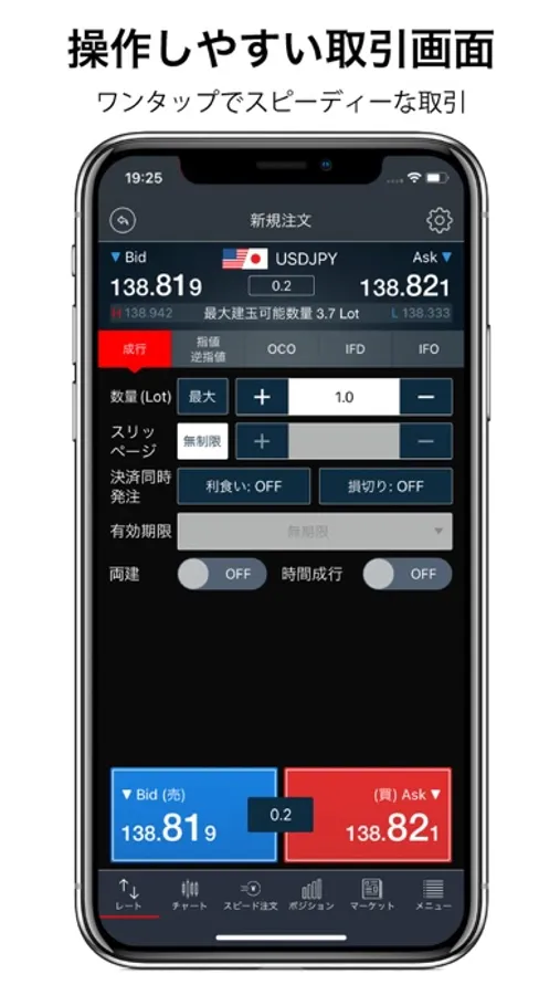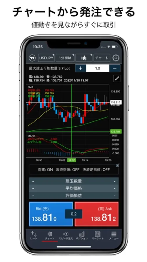 チャートからの発注が可能。価格を見ながらワンタップで発注できます。