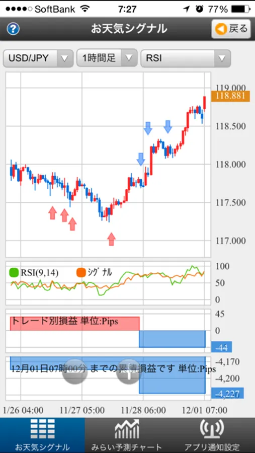 売買シグナルの通知設定をあらかじめしておけば、売買シグナルが出たタイミングで即時にプッシュ通知を受け取ることができます。