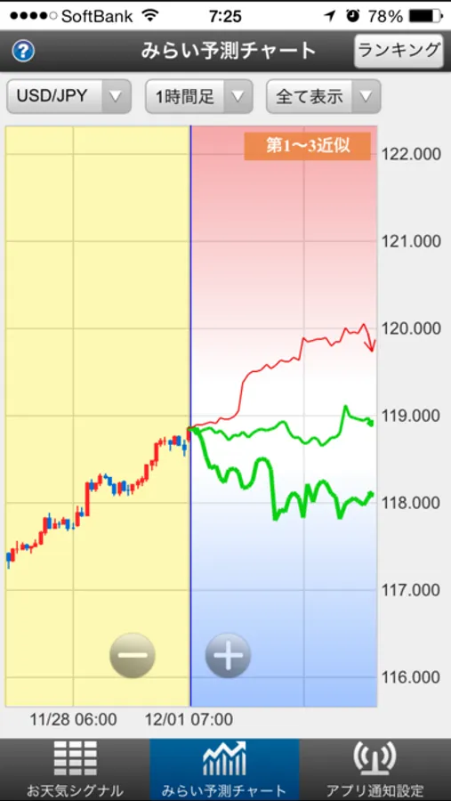 近似率の高いものから、3つまで予測チャートを表示することが可能です。