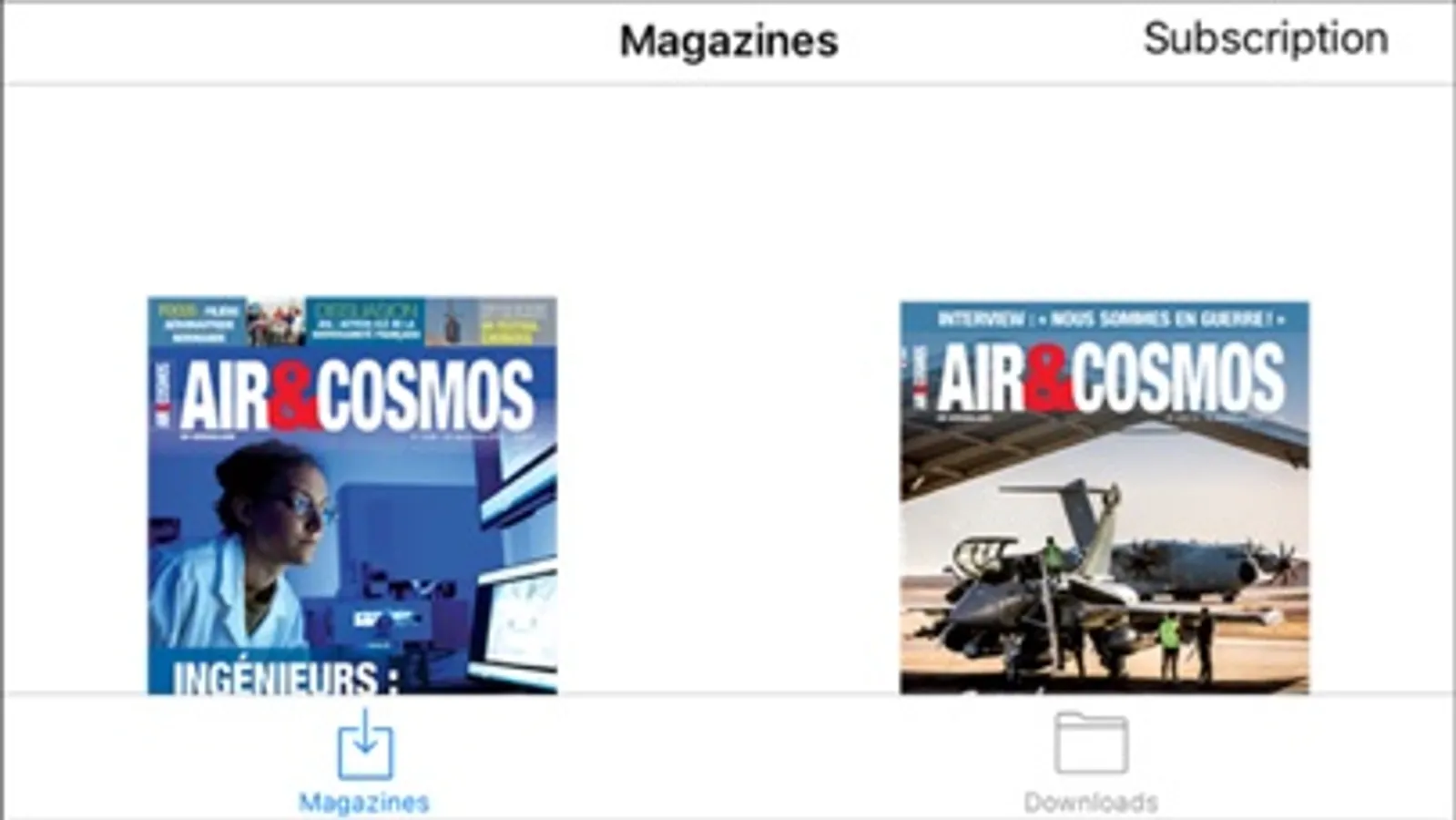Cette application présente les éditions numériques d'Air&Cosmos hebdomadaire et hors-série, reproduction de la présentation papier dans son intégralité.