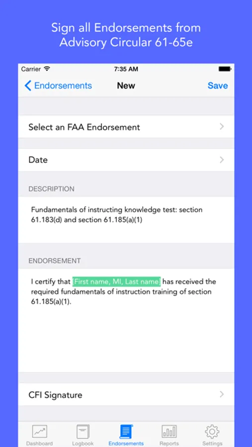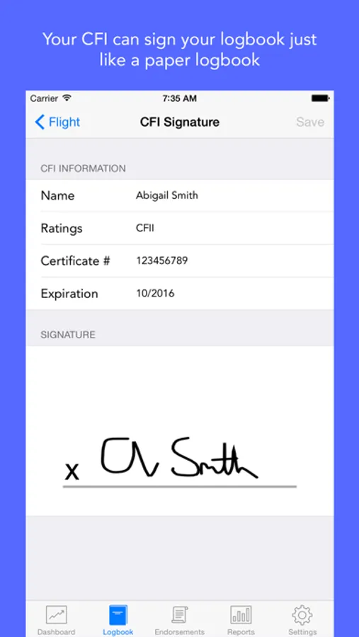 2. Your CFI can easily sign your log entries for any dual instruction.