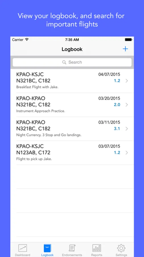 1. Your logbook is saved in the cloud so you never have to worry about losing your flight logs.