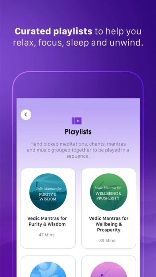 Sattva offers curated collections and playlists to eliminate the confusion of what to meditate on, so you can just close your eyes and meditate according to mood, feeling or time of day.