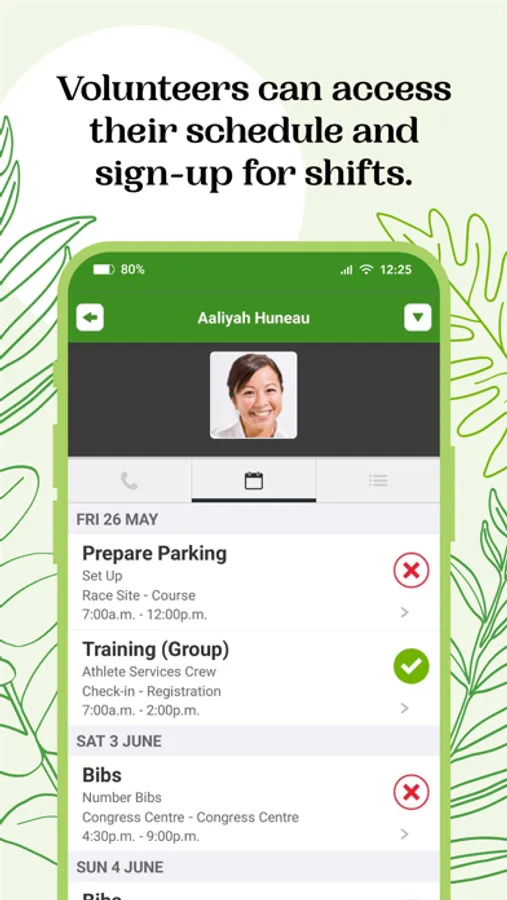 - Check-in volunteer from your phone and track attendance rates