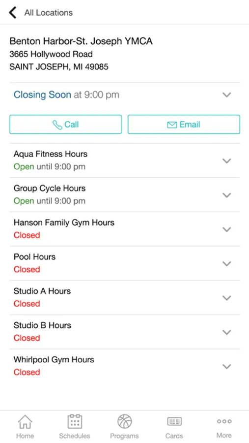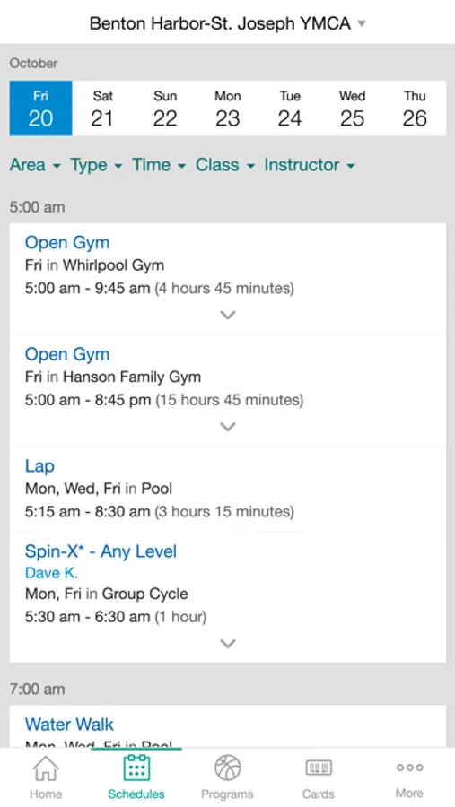• Easily view schedules for each day and filter for the types of classes that you like.