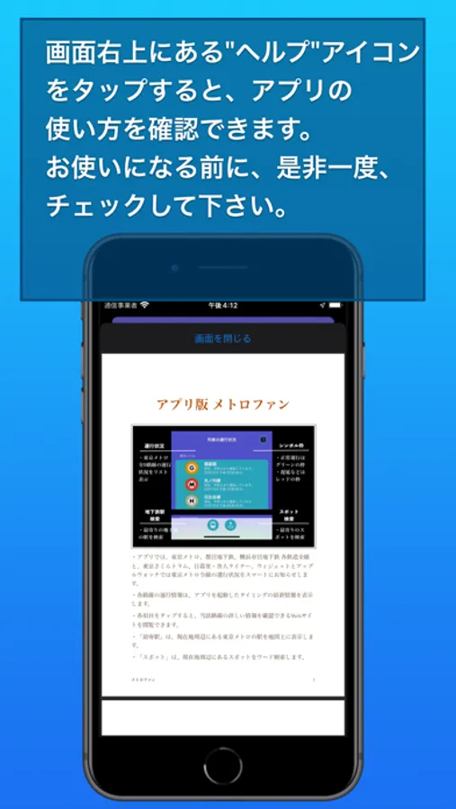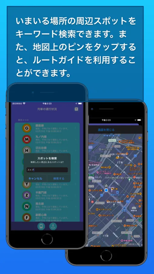 ・付録的な機能として、アプリでは現在地付近にある東京メトロの駅と周辺スポットの検索、アップルウォッチでは在地付近にある東京メトロの駅の検索をご利用いただけます。