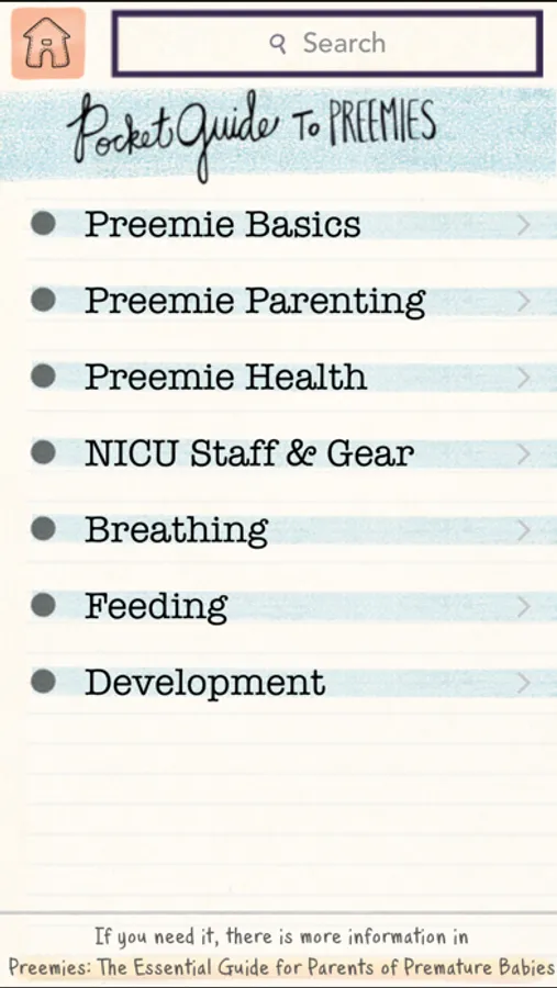 - Pocket Guide to Preemies—information on over a hundred health, developmental, and parenting issues of prematurity