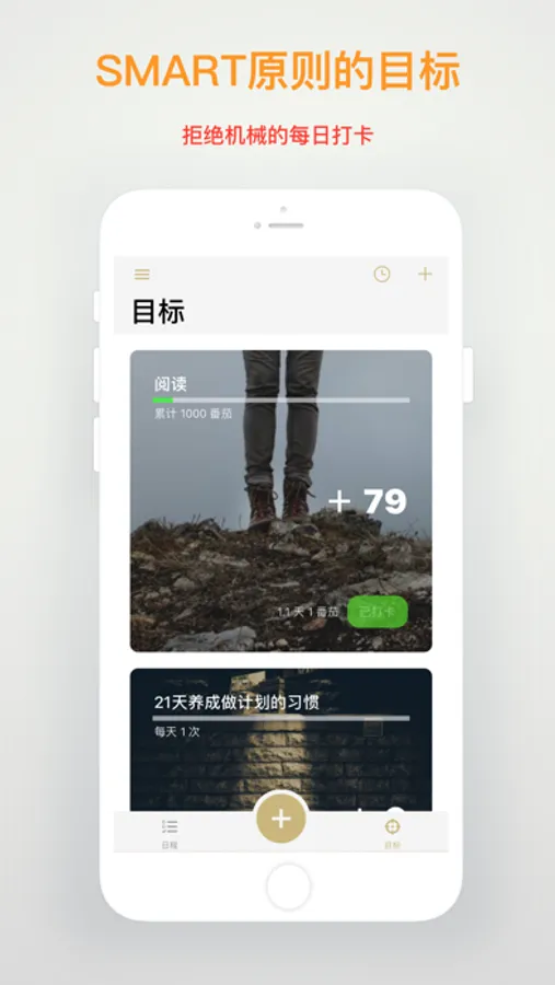 良好的习惯是个人竞争力,有梦想、有目标才有施力的方向。目标不是写在纸上,要写在每日待办清单里。目标还要遵循SMART法则,完成一小步可打卡,可检查,可统计,可预估,这样才能有效的保证目标的可达成。我们有目标的检查单,能够安排到具体的日历上,让每天都能向某些目标前进的同时也不至于被全部的目标一下子压垮。