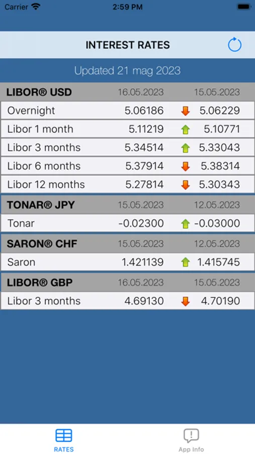 All the interest rates for CHF, GBP, JPY and USD in one unique app.