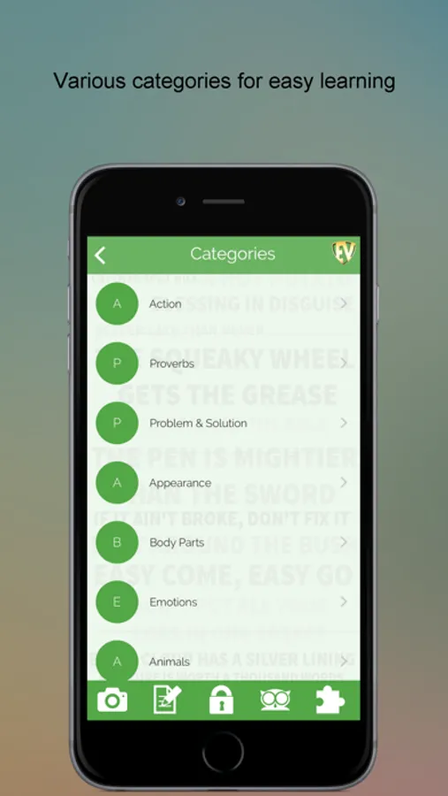 We have categorised all the common idioms, phrases and proverbs into 20 different genre starting from Action, Animals, Appearances, Business/ Professionals, emotions, interactions etc. to let users find the best terms. If that’s not enough, all the idioms, phrases and Proverbs are listed alphabetically with faster search facility, easy to navigate through entire app.