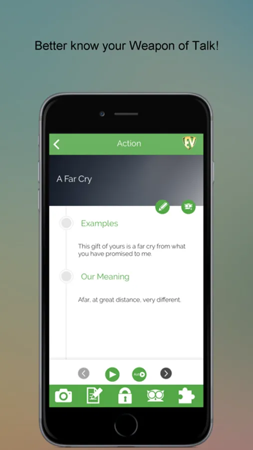 Different types of Idioms, Phrases, Proverbs and their description now at the tip of your finger. Increase your vocabulary with the different Idioms, Proverbs and Phrases along with their examples. With more than 4000 Idioms, Proverbs and Phrases this is one of the best and handy reference guide available in your pocket. This app is full of numerous QUIZZES to brush up your knowledge and challenge your learning.