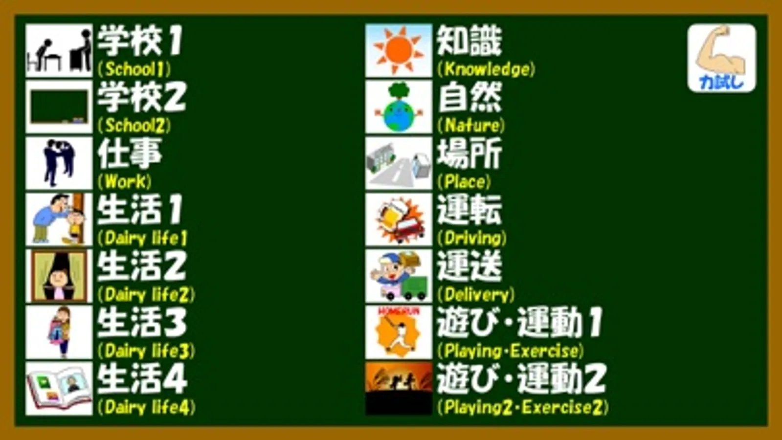 1) The kanjis are categorized into several groups like "School", "Dairy life" to image it easily with pictures.