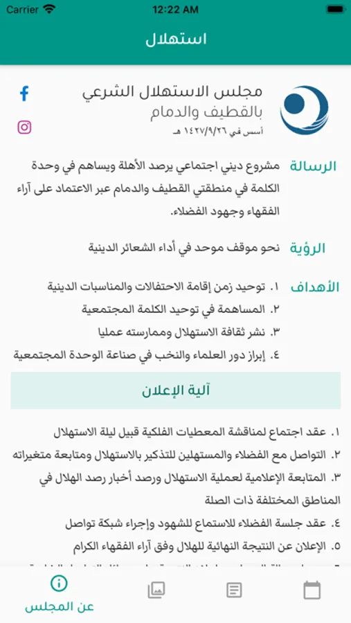 تطبيق "استهلال" هو تطبيق تابع لمجلس الاستهلال الشرعي بالقطيف والدمام.