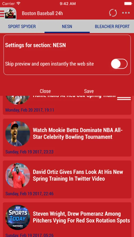 Simply the best! Boston Red Sox 24h mashes up news from newspapers and web portals in a single app!