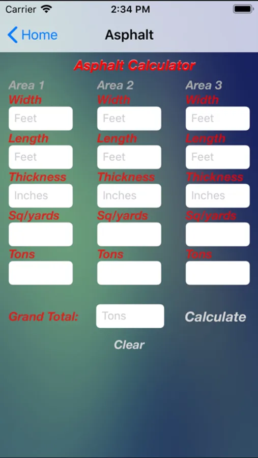 Simple but yet powerful asphalt, concrete and gravel calculator, simply enter the Length, Width and thickness and the app will do the rest, in case more than one area is needed for calculation this app has 3 areas to simplify the process.