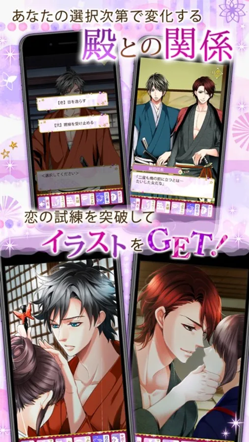 好みのシチュエーション、好みのイケメンを選び、自分が主人公の理想の恋愛ストーリーを体験することができます。