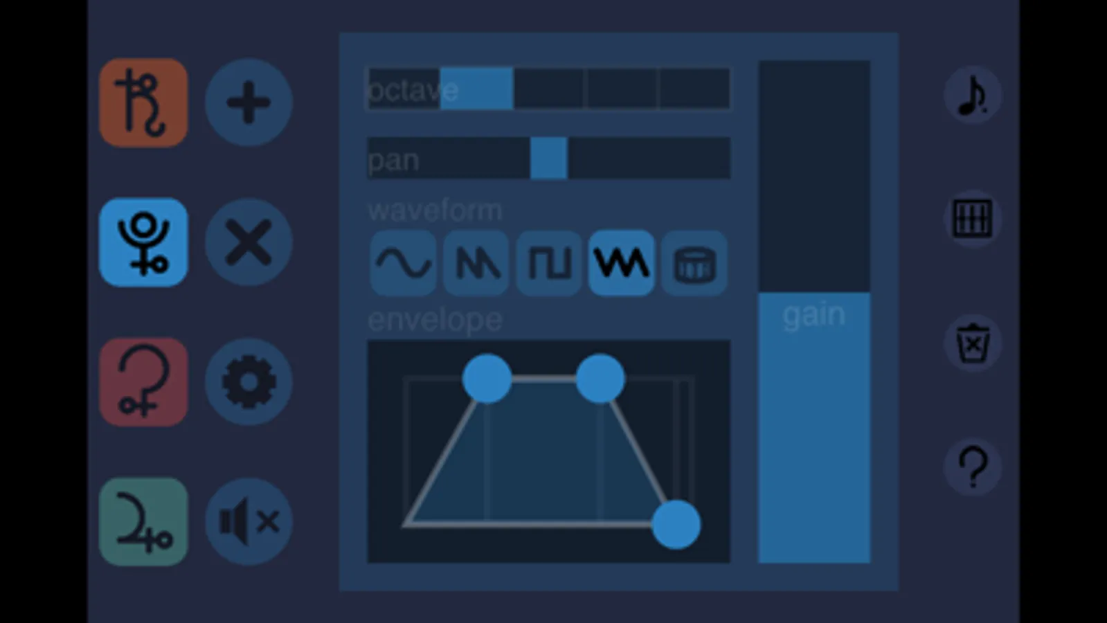 Users play and record sequences in real time and are able to play with various synthesis parameters to create a tailored musical experience. Bright colour, sleek aesthetic and intuitive user interfacing allows users of any age and prior musical experience / training to have a truly unique creative, musical experience.