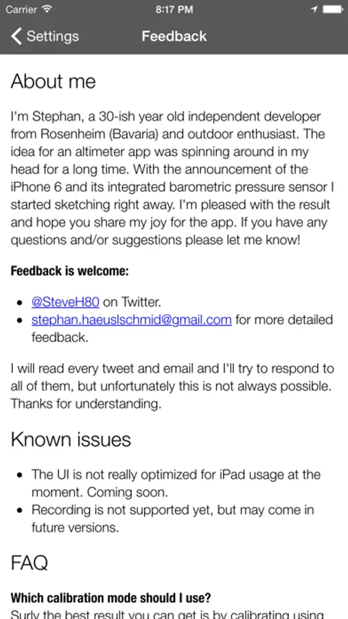 Barometric Altimeter is based on the new barometer in iPhone 6, iPhone 6 Plus and iPad Air 2.