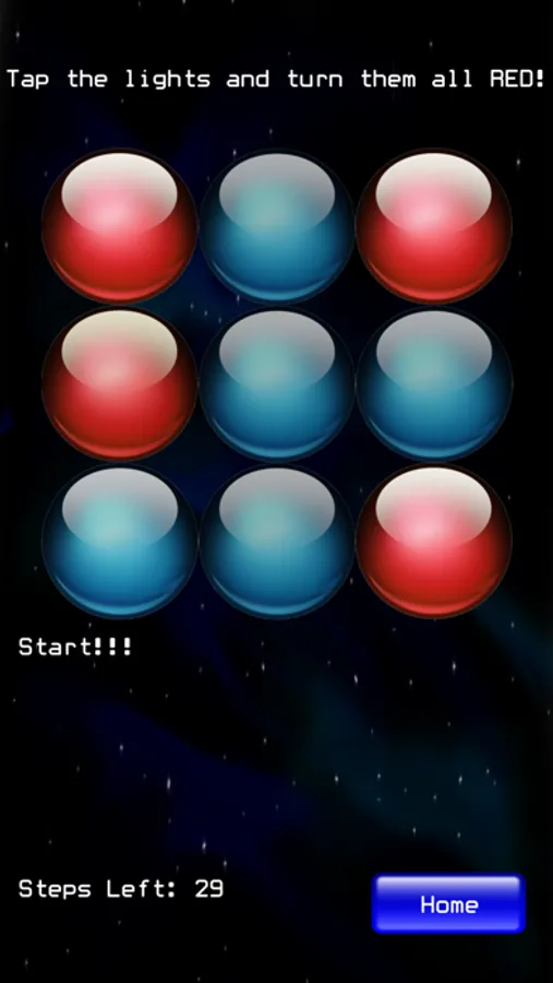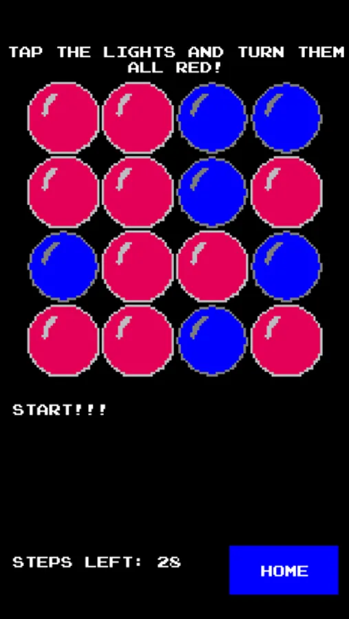 When you tap a light, the lights surrounding it will toggle. Try to turn all the lights to ON and solve the puzzle as quick as you can!