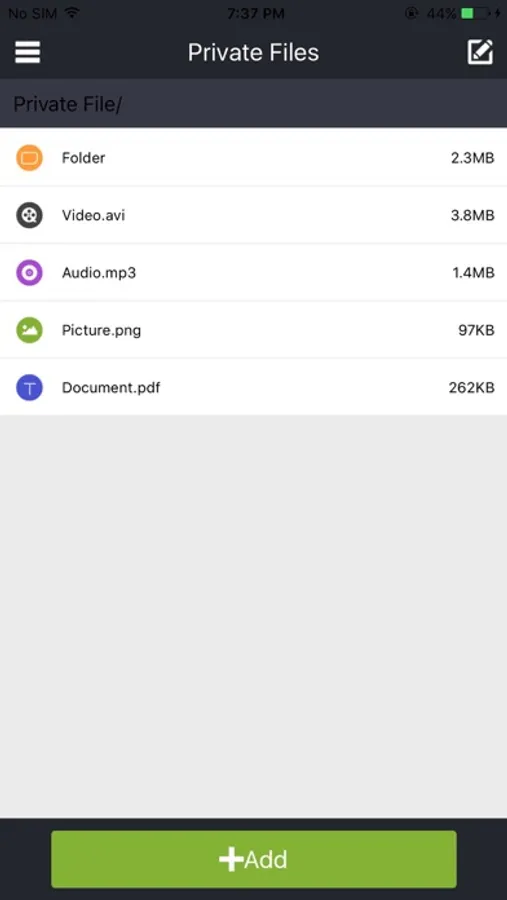 ■ Private File provide users easily manage private files, each time you start the application needs to be validated through authentication to access one file.