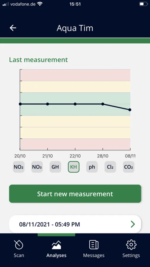 Use the specially calibrated JBL PROSCAN ColorCard enclosed and follow the instructions in the app. Under “Analyses” you can manage your aquariums and ponds and compare the measurements in a graph. You can now access this data from anywhere in the world via your myJBL profile - even without a smartphone. Without the myJBL profile, the last measurement is only locally saved in the app. The measurement and evaluation with recommendations for action is also possible here without restrictions. The following water types are available in the app: "Aquarium", "Pond" and "Water". If you select aquarium and water, the app calculates the current CO2 content from the pH and KH values measured with the app as a bonus.