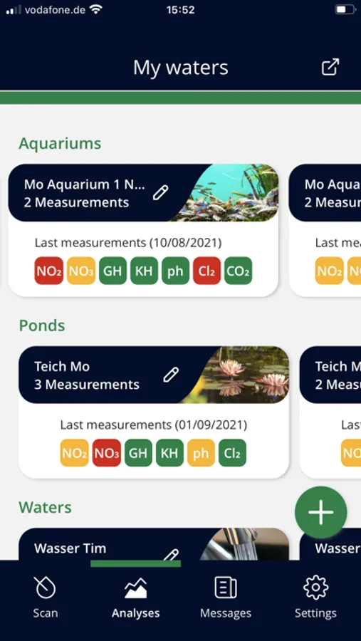 • Creation of several profiles for the waters (aquarium / pond / water)