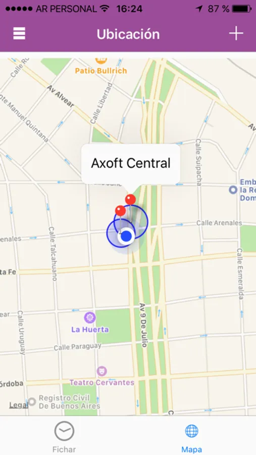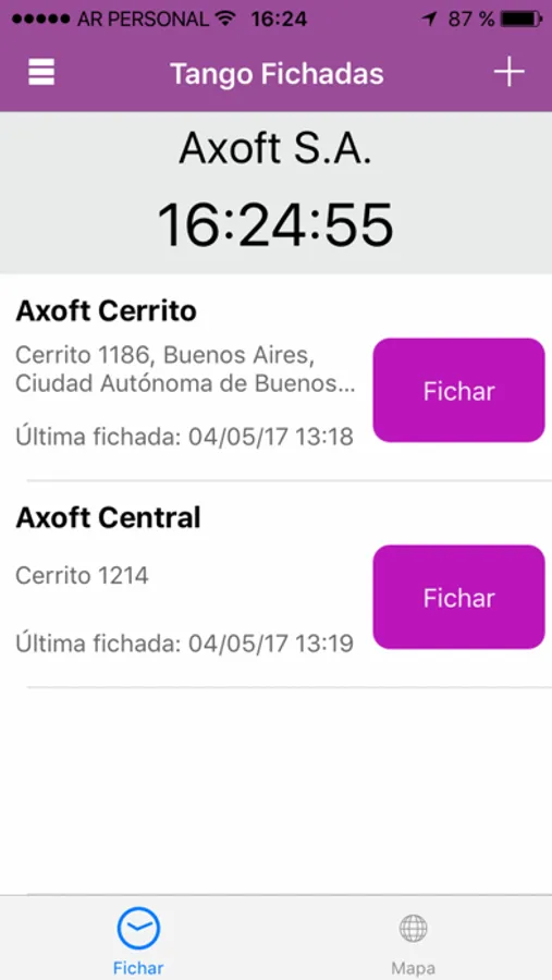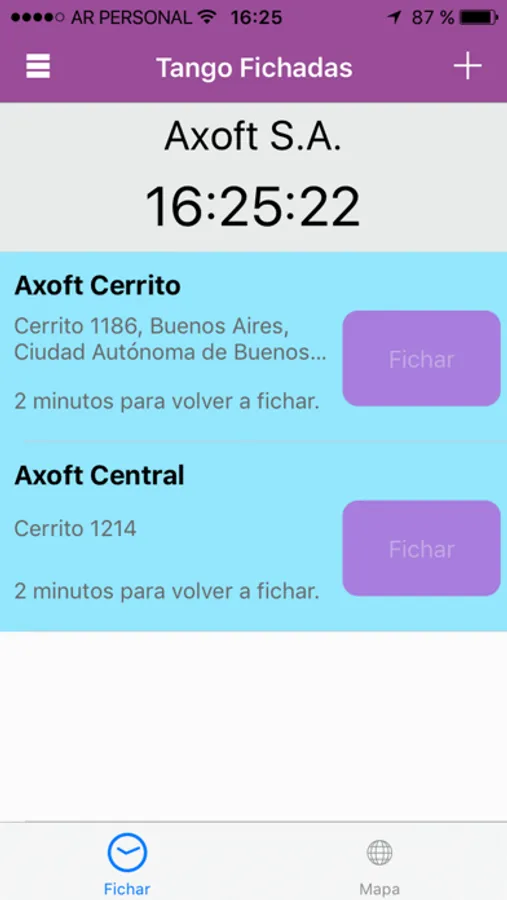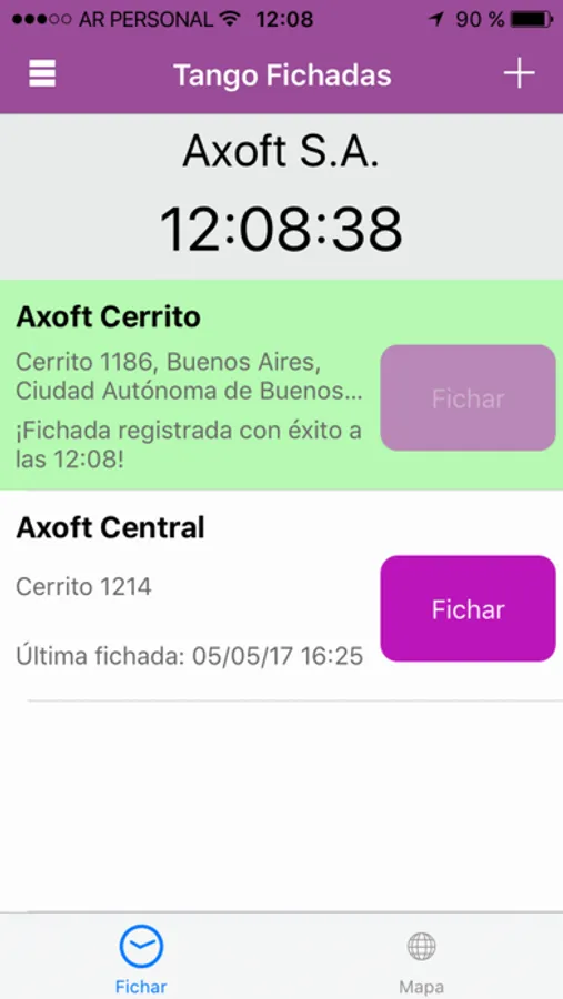 Con Tango Fichadas registrar tu horario trabajado es tan sencillo como pulsar un botón. Aprovechando las tecnologías GPS y Wi Fi, fichá de manera mucho más ágil a través de un sistema de sugerencias por proximidad. Podrás observar en el mapa tu posición y las ubicaciones cercanas disponibles para fichar.