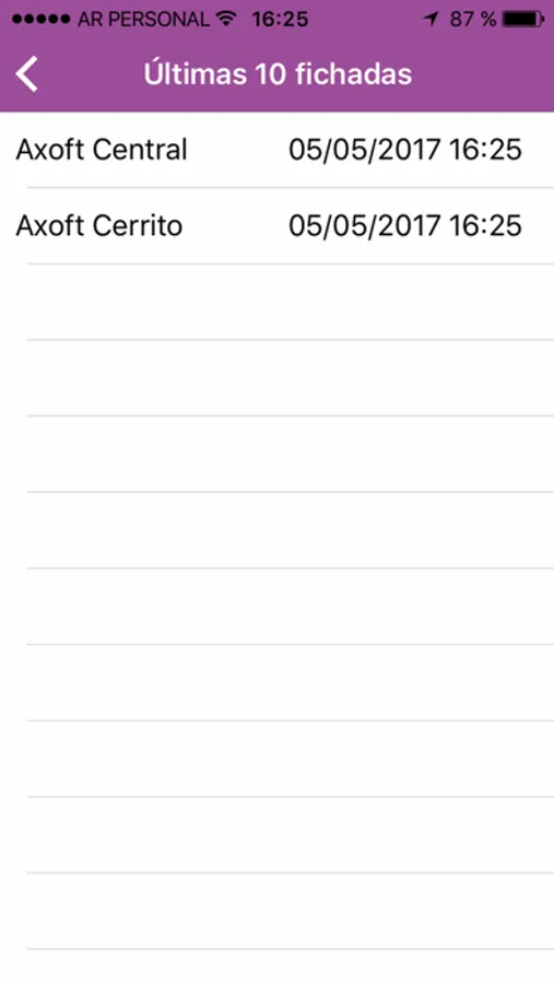 • Chequea las últimas 10 fichadas realizadas en tu dispositivo.