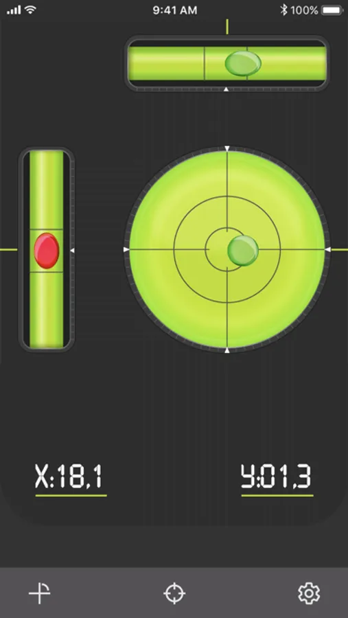 With this virtual instrument, functioning the same as it’s real physical equivalent (also known as libella, spirit level or bubble level), you can easily check if the measured surface is truly even. Different types of spirit levels may be used by carpenters, stonemasons, bricklayers and other building trades workers, surveyors and metalworkers. The Best Level beside the classical measure level contains also the calibration option and the bull's eye level (also known as circular bubble) which measures the level simultaneously in two dimensions – horizontal and vertical. If measured surface is even, the ball shown on screen will became red. If surface is unlevel, the ball will remain gray and will be situated outside the center of viewfinder.