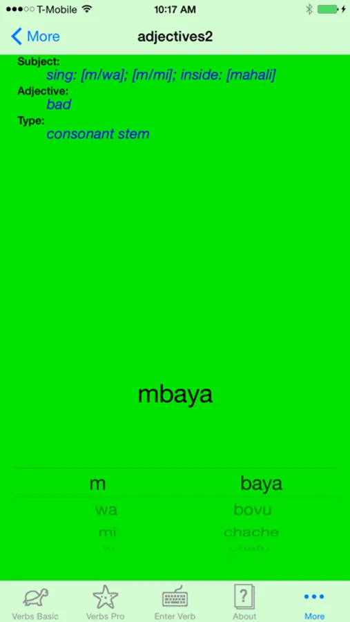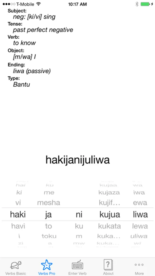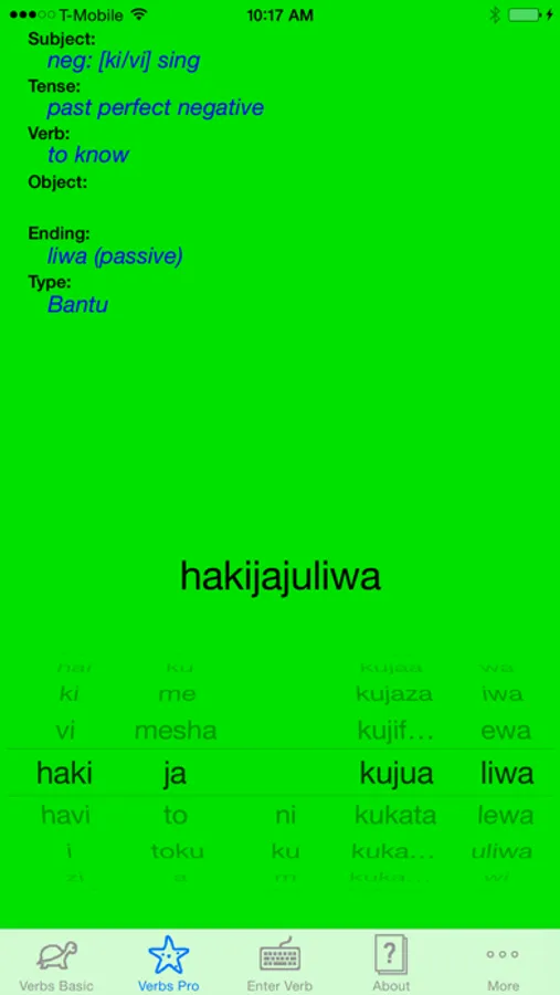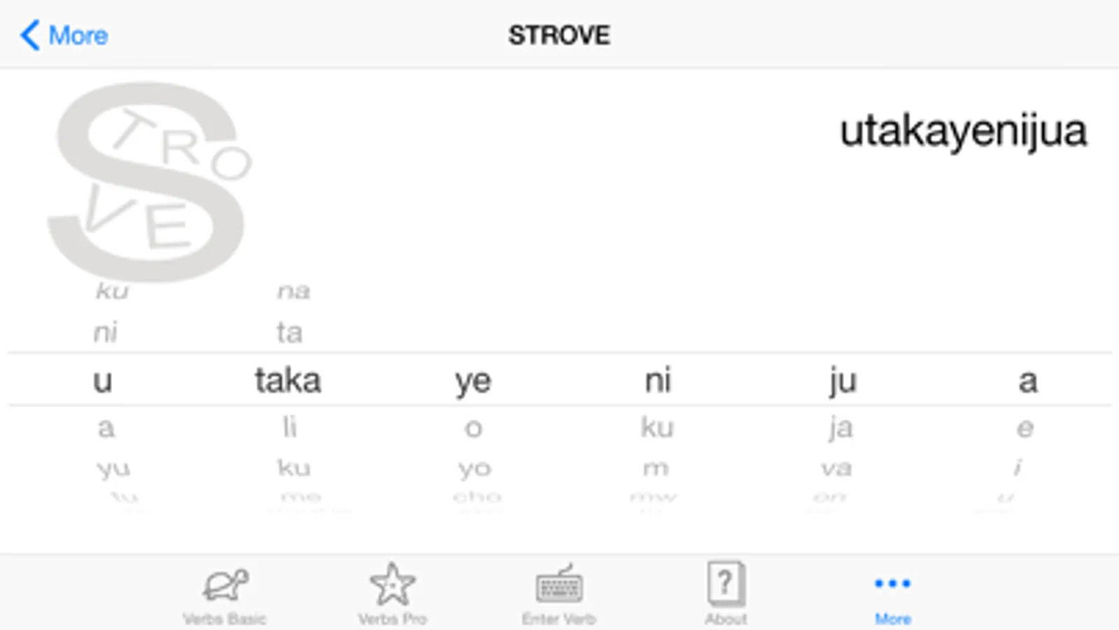 The purpose of this app is to help those learning Swahili to understand the structure of Swahili verbs using the “STROVE” acronym that many students of the language are familiar with after reading "Simplified Swahili" by P.M. Wilson.