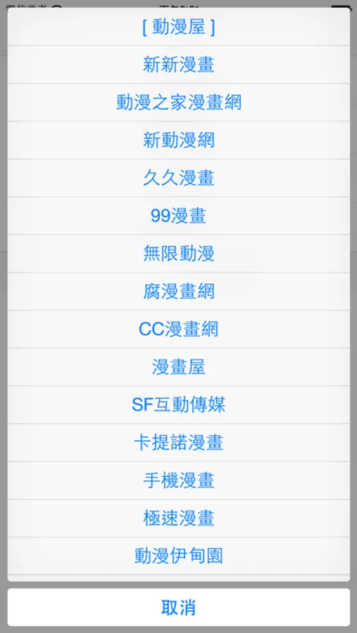 動漫屋、新新漫畫、動漫之家漫畫網、新動漫網、久久漫畫、99漫畫、無限動漫、腐漫畫網、CC漫畫網、漫畫屋、SF互動傳媒、卡提諾漫畫、手機漫畫、極速漫畫、動漫伊甸園、汗汗漫畫、笨狗漫畫、17KK漫畫網、CC圖庫漫畫網、薇薇時尚雜志網、雜志迷