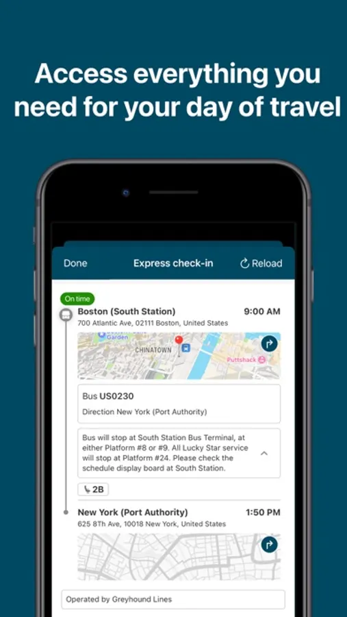• Show your ticket directly from the app. No more checking in, no more printing a ticket. Simply show the driver the QR code of your ticket in the app.