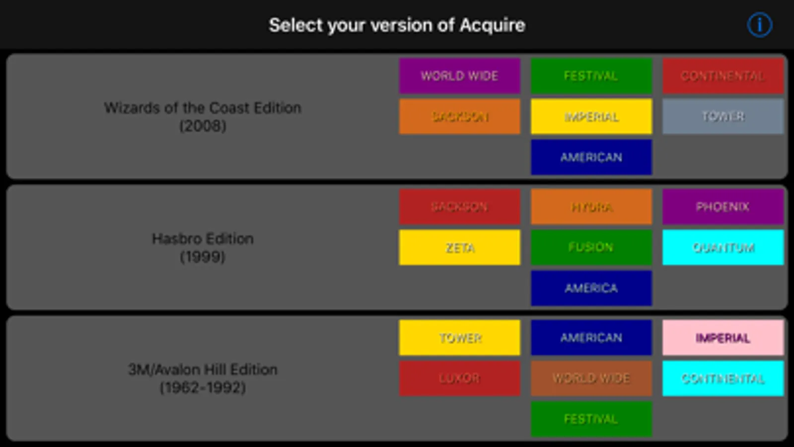 Companion app to the board game "Acquire". Instead of tedious lookups on the reference chart, this app does it all for you!
