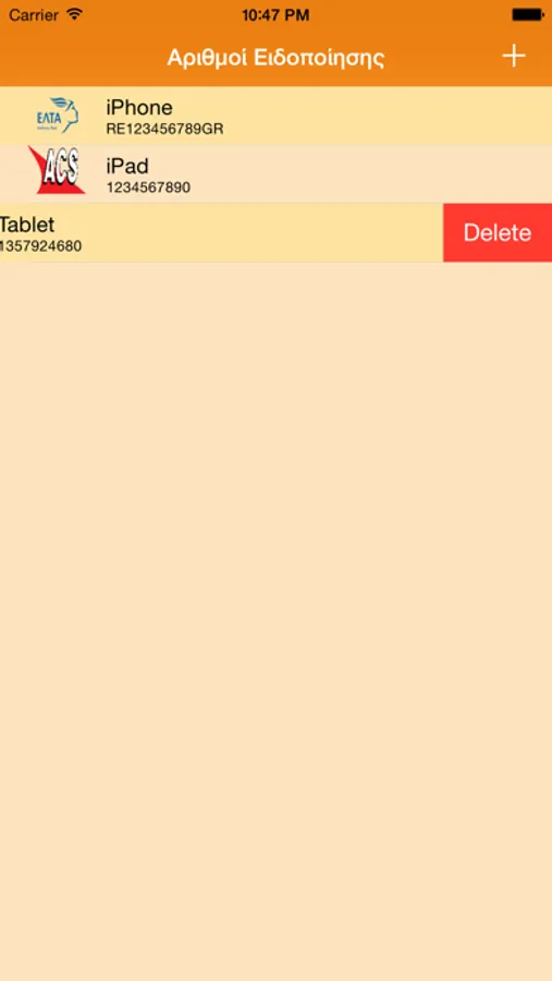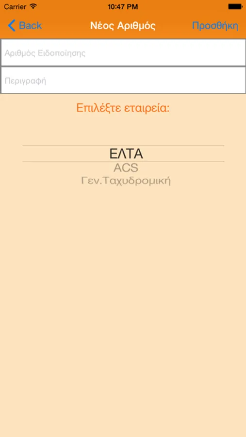 Υποστηρίζει αριθμούς αποστολής των ΕΛΤΑ, της ACS και της Γενικής Ταχυδρομικής.