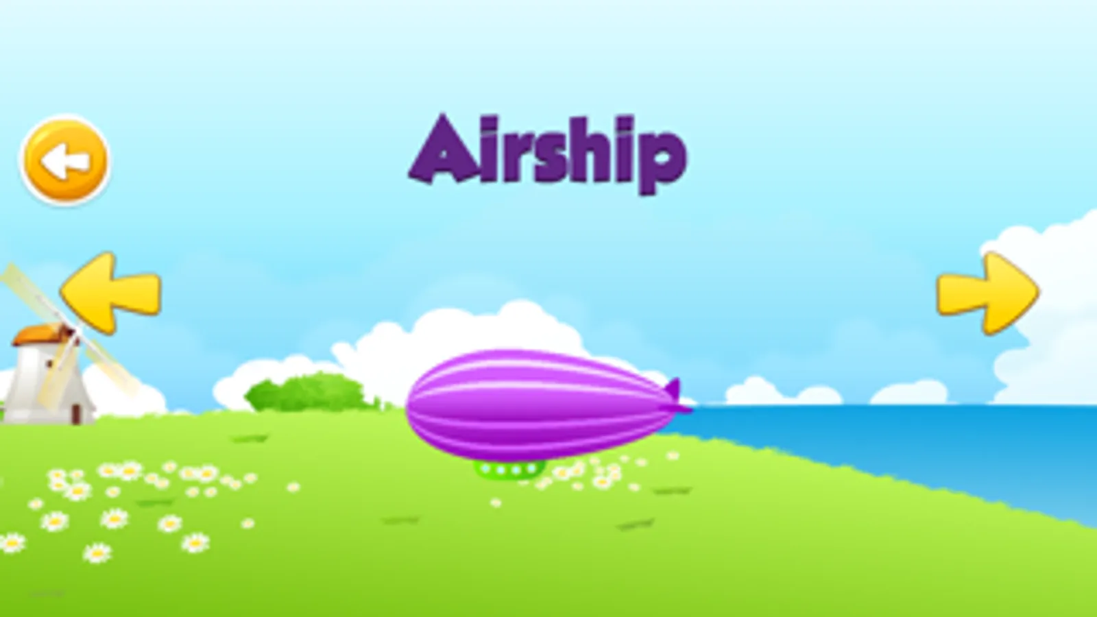 - The Quiz game helps your child to test his knowledge about associating the names to transportation means.