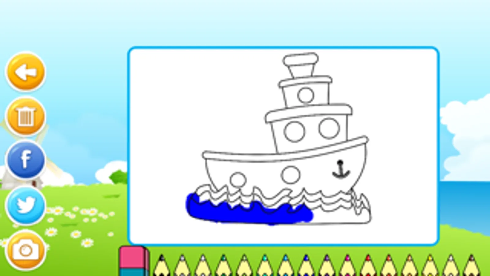 - Does your child love coloring? In this app he can draw and color the transportation means coloring pages, then save them to the photo gallery, or share them to Facebook or twitter.