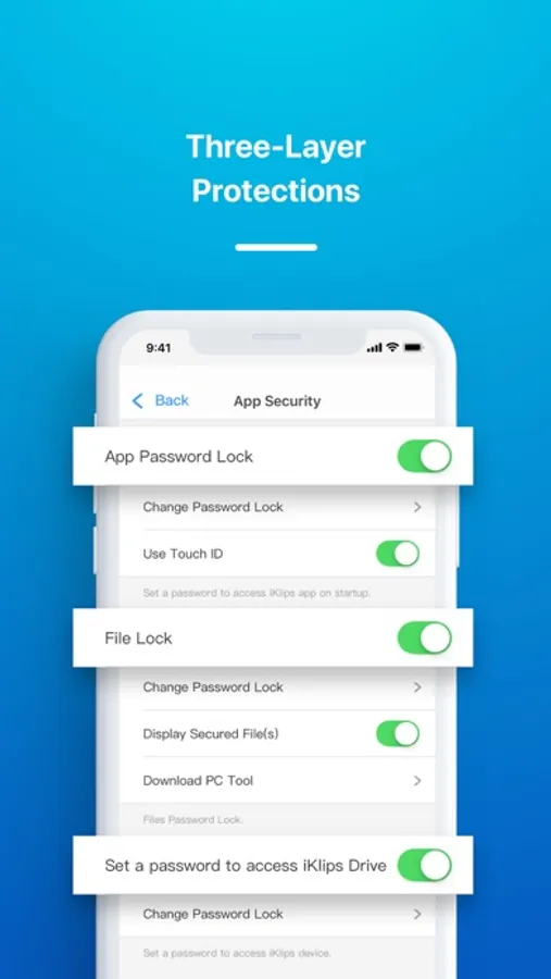 Without the Touch ID or the password, your iKlips cannot be unlocked, keeping your files safe and secure.