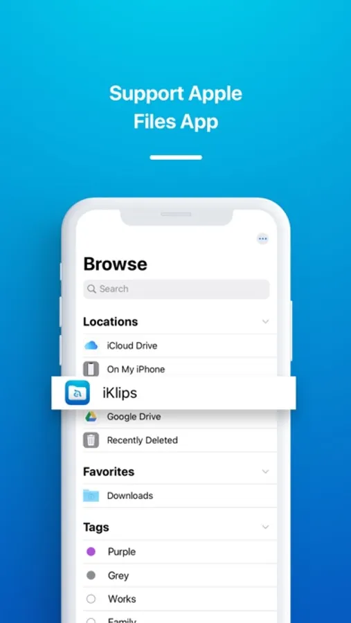 Apple File App is fully supported by iKlips 5.0. You can access your files on iKlips via either Apple File App or iKlips App.