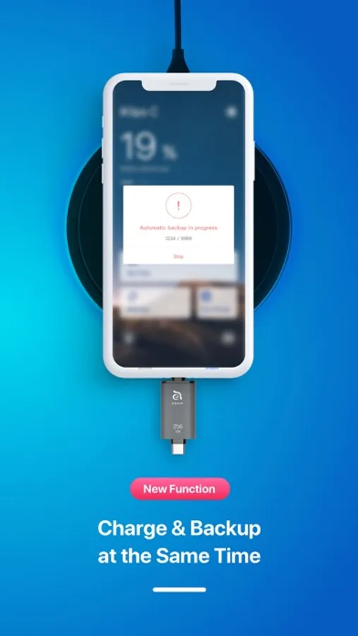 Put your phone on a wireless charger with iKlips plugged in, the backup process starts automatically.