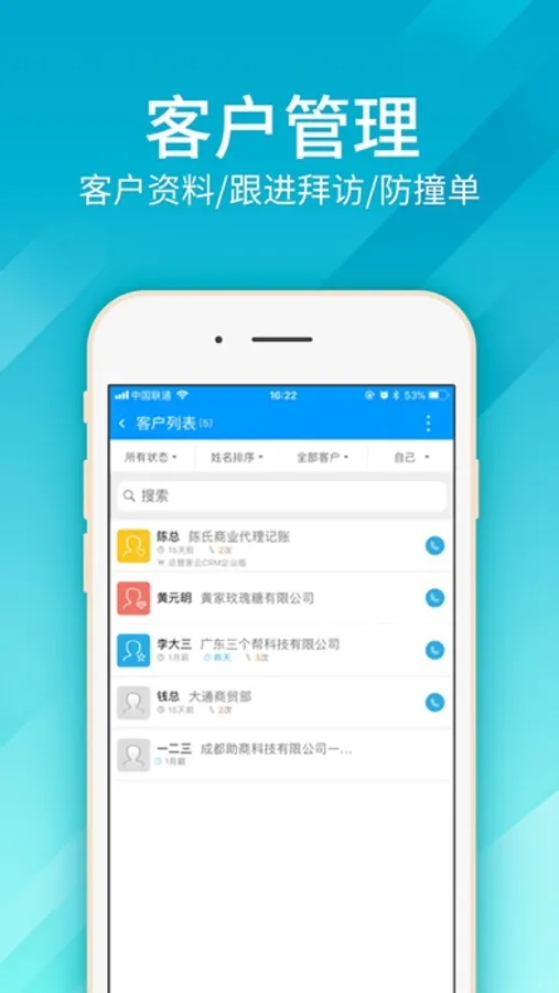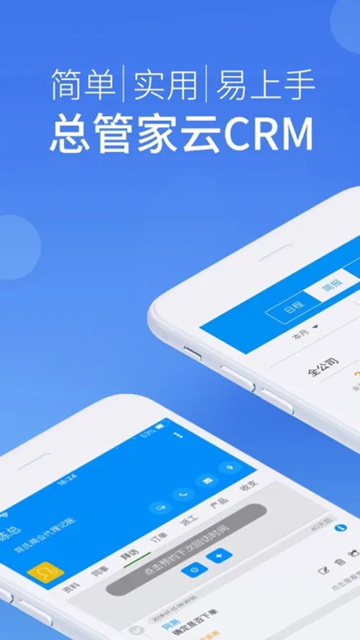 俗话说:客户不跟踪,销售一场空!总管家云crm,简单实用的客户管理系统,专为销售团队量身设计!广泛使用在商贸、工贸、设备维保(安装维修),化工、机械、电子、家电、设备、知识产权,咨询服务,医药医疗器械等等各行各业,管理客户,跟进拜访,订单进销存,派工管理,项目管理和管理销售团队。能有效积累客户,提升销售业绩!祝您打造金牌销售团队。总管家有15年品牌历史,屡获大奖,深得用户好评!系统根据国内外最先进的CRM(客户关系管理系统)理论,以客户为中心,实现客户、销售、订单进销存财务一体化管理,科学规范业务流程,即使不懂软件的人,按照提示,都能按部就班,快速上手。总管家,提升企业运营效率,以科技助力商业腾飞!