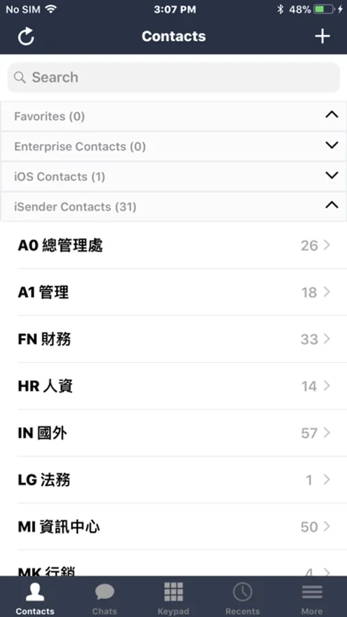 1.Integrated internal tel extensions and providing Chang Chun Co., LTD tel extension table query, you can dial an tel extension or use the message through iSender to communicate, save communication costs.