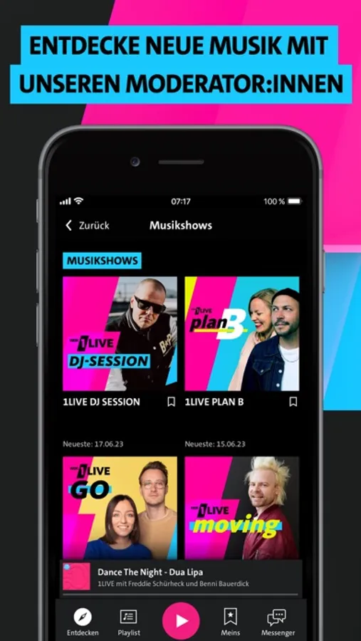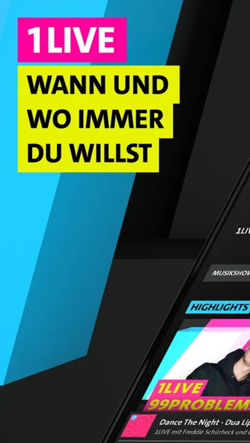- Stream the best music shows, like DJ Session, Plan B, Fiehe, Moving or the 1LIVE Music Specials - whenever you want to hear them.