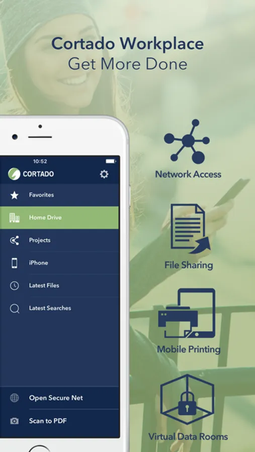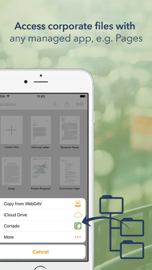Cortado's Workplace app securely connects iOS devices to the corporate network. The app is a component of Cortado’s business solutions.