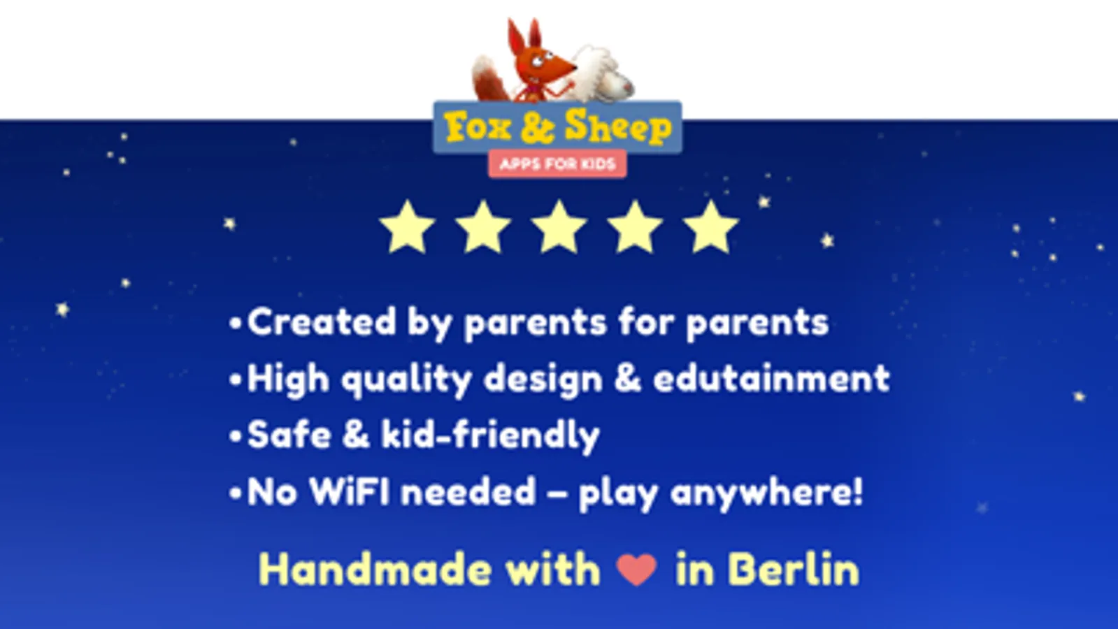 We are a Studio in Berlin and develop high quality apps for kids at the age of 2-8 years. We are parents ourselves and work passionately and with a lot of commitment on our products. We work with the best illustrators and animators around the world to create and present the best apps possible – to enrich the lives of our and your kids.