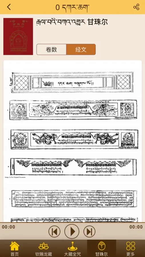 “显密经藏”APP是非盈利的公益性的手机聆听佛经的平台,主要用声音传播佛经原典,该应用平台有藏、汉两个版本的《大藏经》mp3语音音频供聆听,汉文版大藏经——钦赐《龙藏》,藏版文大藏经——德格《甘朱尔》。