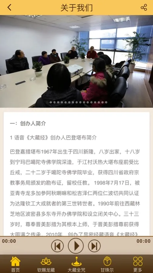 2010年为弘法利生,巴登嘉措仁波切荷担如来家业发大心、立宏愿,创办了“显密经藏” 有声佛经中心。