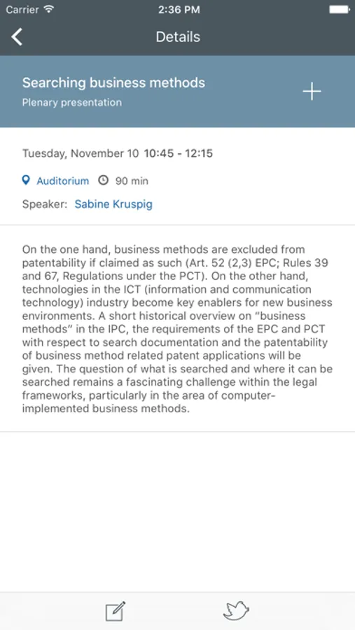 The EPO Patent Information Conference app provides rapid access to the conference schedule, location of session rooms, published presentations, and other useful information about the EPO Patent Information Conference. It is updated yearly.