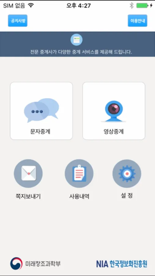 - 영상중계 서비스 : 실시간으로 중계사와 수화중계를 할 수 있습니다.